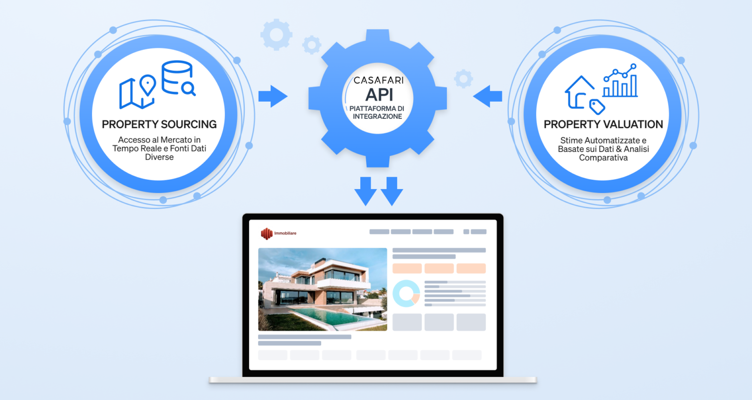 CASAFARI è una soluzione di integrazione dati specializzata nel fornire questa tecnologia per l’industria immobiliare, offrendo un’esperienza di integrazione delle applicazioni fluida. Consente al tuo software di comunicare direttamente con il nostro vasto database immobiliare, assicurandoti l’accesso ai dati più accurati e completi disponibili.